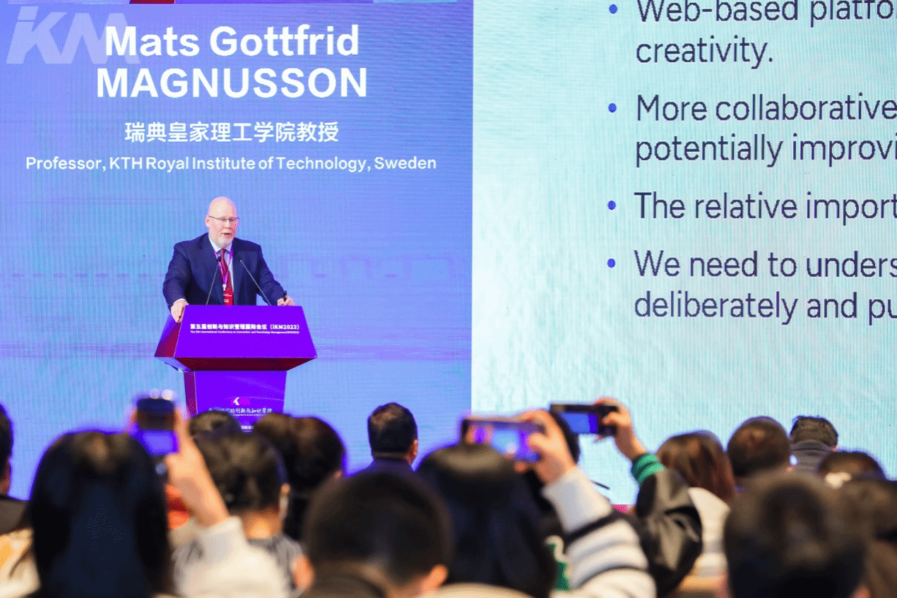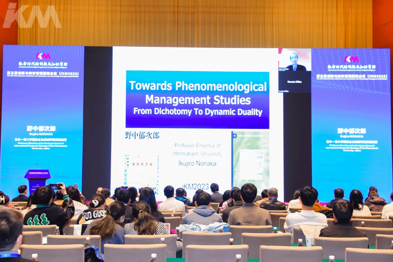 本次大会以“数智时代的创新与知识管理”为主题,共邀请全球著名知识管理大师日本一桥大学野中郁次郎教授、中国工程院院士许庆瑞教授、加拿大工程院院士王力翚教授、国家知识产权局知识产权运用促进司原司长雷筱云、清华大学技术创新研究中心主任陈劲教授、香港理工大学知识管理与创新研究中心李荣彬教授、德国斯图加特大学Alexander Brem教授等在内的20余位海内外专家学者做主旨发言,吸引400余位来自全国高校科研人员及企业代表共聚一堂,共话创新与知识管理的未来。