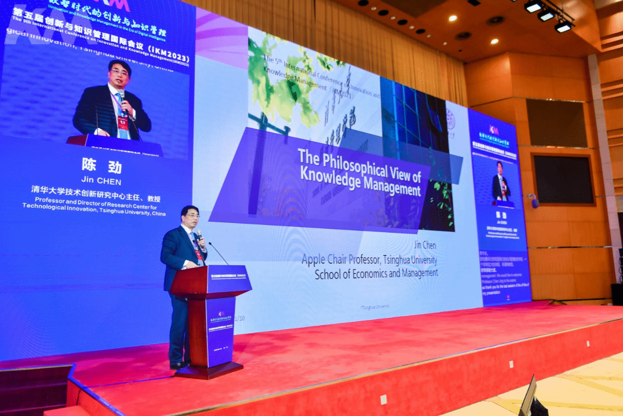 清华大学技术创新研究中心主任陈劲教授以“知识管理的哲学观”为主题进行演讲。特别展现了中国知识观与道德伦理的紧密联系——始终围绕“知”与“行”展开讨论。同时强调,知识管理应该与情境和动态能力相结合,并延伸到未来的探索之中。