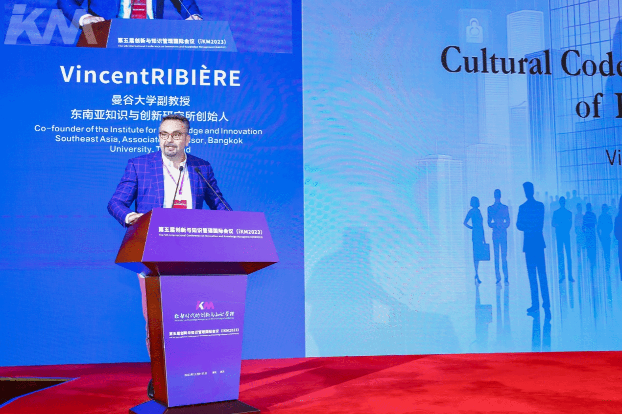 东南亚知识与创新研究所创始人、曼谷大学Vincent RIBIERE教授以Cultural Codes:Deciphering the Patterns of Knowledge Hiding为题,围绕知识隐藏的前因、动机、理论等对知识隐藏的路径展开梳理。