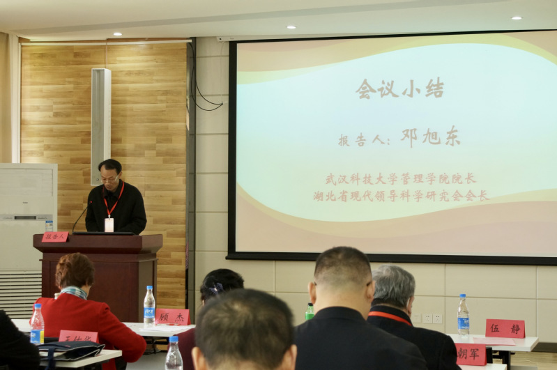 研究会会长邓旭东教授对本次会议进行总结。他指出本次会议有时代性和代表性两大特点,并表示研究会将继续更好地发挥学会平台功能和学术引领功能。本次会议体现了理论与实践的密切结合,彰显了“研究领导科学,实现科学领导”的研究会宗旨,也为推进中国式现代化贡献领导科学研究力量发挥了应有的作用。据悉,湖北省现代领导科学研究会是由湖北省社科联主管的省级学会,2009年起挂靠我校。