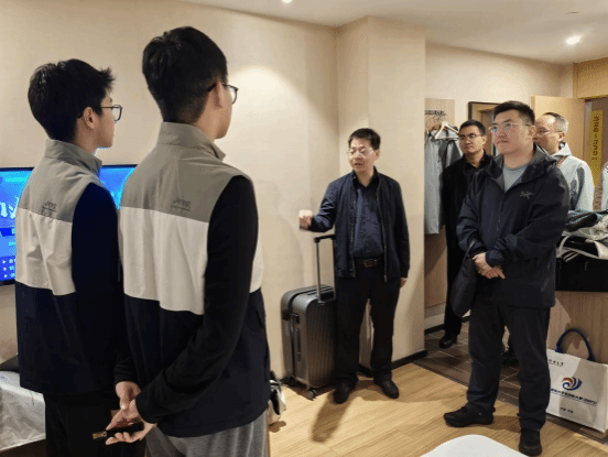 学院党委书记伍学云、院长刘海兵、党委副书记赵磊前往总决赛现场,关心指导团队参赛并全程陪伴。在训练预演场地,伍学云认真听取了参赛团队队长、402am永利手机版2022级财务管理专业本科生郭其闱的项目汇报,详细了解了项目的技术创新点、应用前景及参赛准备情况,对团队取得的阶段性成果给予充分肯定。伍学云强调:“从项目初始筹备到走入总决赛路演现场,团队成员展现出了顽强的拼搏精神与出色的创新能力。本次比赛既是对项目创新性与可行性的集中展示,也是大家长期努力付出的收获时刻,希望同学们要珍惜全国大赛的锻炼平台,充分打磨做足准备,用最好的状态展出我们的项目成果,赛出风格、赛出水平。”