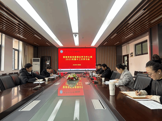 (通讯员李菲菲)12月8日上午,学院在黄家湖校区80315会议室举行2025年党委理论学习中心组第十二次学习会议。党委书记伍学云主持学习会,全体党委委员参加学习。