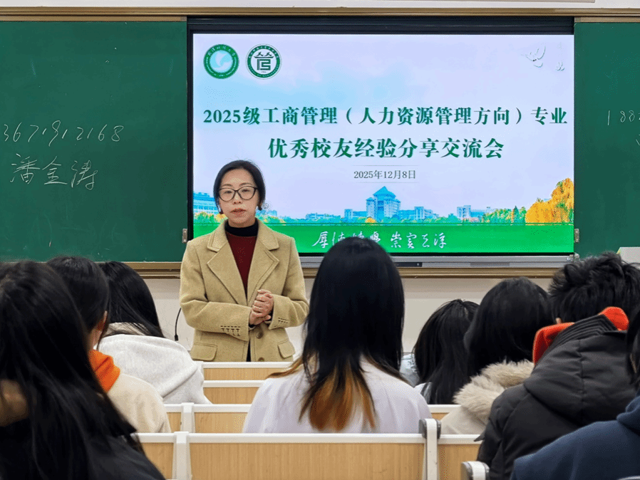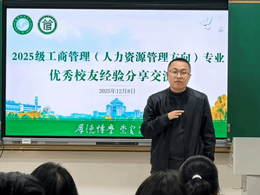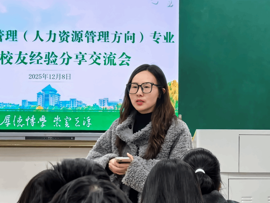 (通讯员时莹:石淼)12月8日,402am永利手机版于教十一B区418开展2025级工商管理(人力资源管理方向)专业优秀校友经验分享会。2012届人力资源管理专业优秀校友潘金涛、田瑜返校分享实践经验,人力资源管理2501班班主任张敏及2025级本科生辅导员葛红涛出席交流会,2025级人力资源管理专业全体学生参加会议。